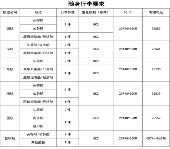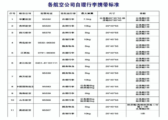 呂梁機(jī)場執(zhí)飛航空公司的隨身手提行李標(biāo)準(zhǔn)