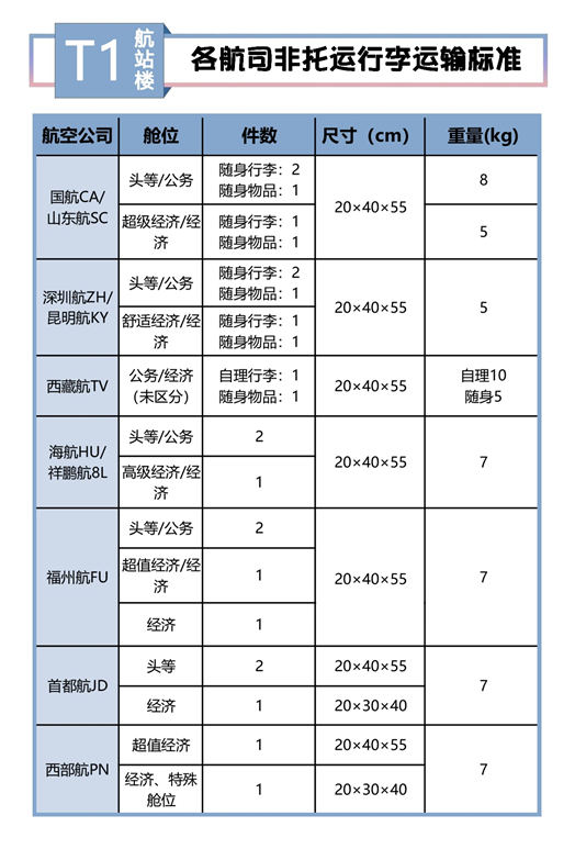 公務(wù)艙8KG 經(jīng)濟(jì)艙5KG |